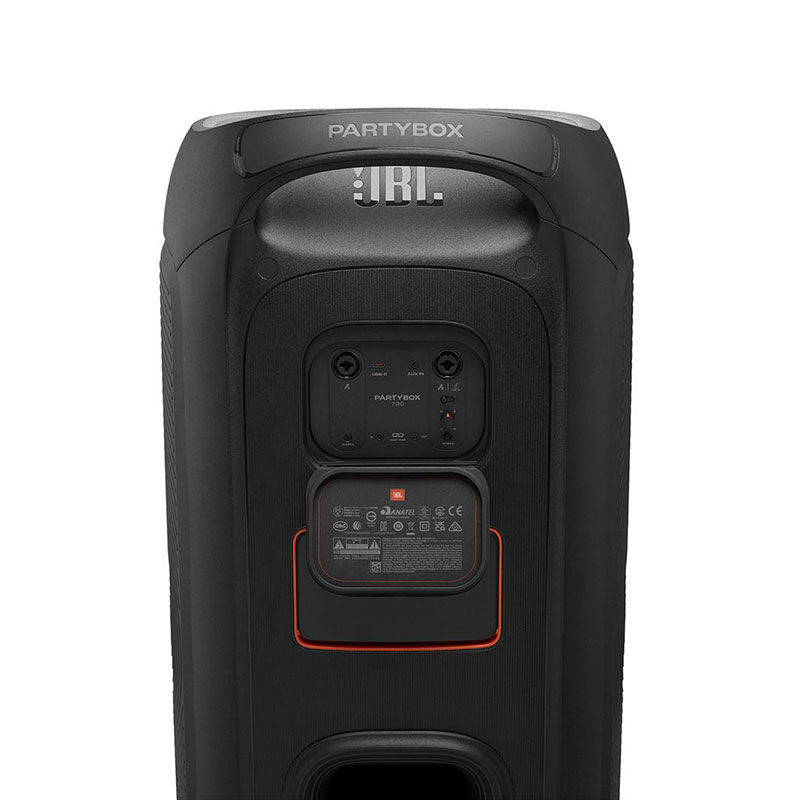 Nudi brojne mogućnosti povezivanja, uključujući Bluetooth 5.4, USB-C, AUX-in, line-in te čak dva XLR ulaza, prikladna za mikrofon, gitaru ili DJ konzolu. Zamjenjive baterije (prodaju se zasebno) omogućuju do 15 sati reprodukcije, što je idealno za zabave bez električne mreže; kada se baterija isprazni, jednostavno je zamijenite i glazba se nastavlja. Zvučnik možete povezati s drugim JBL PartyBox 720 ili bežično povezati više zvučnika putem Auracast tehnologije za još snažniji zvuk.