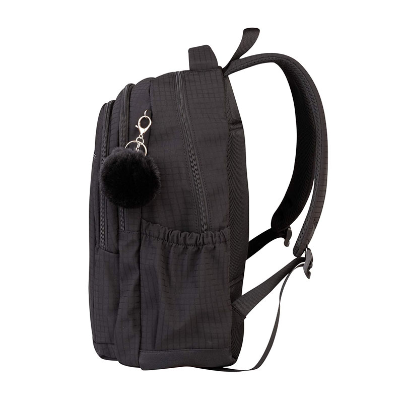 Ruksak je dizajniran za svakodnevnu upotrebu, gdje se isprepliću praktičnost i moderan izgled. Zahvaljujući pametnoj organizaciji prostora omogućuje jednostavno raspoređivanje svih potrepština, a istovremeno pruža udobnost tijekom cijelog dana. Unutrašnjost uključuje organizator za uredno spremanje manjih predmeta te poseban pretinac za prijenosno računalo, koji osigurava dodatnu zaštitu i sigurno prenošenje. Za dodatnu funkcionalnost tu je i bočni džep za bocu, koji omogućuje brz pristup napitku. Udobnost pri nošenju osiguravaju podstavljene i podesive naramenice, koje se prilagođavaju korisniku, te lagano podstavljen leđni dio koji pruža dodatnu potporu. Poseban estetski naglasak daje privjesak za ključeve u obliku cofka (»pom pom«), koji ruksaku dodaje razigran i trendovski izgled.
