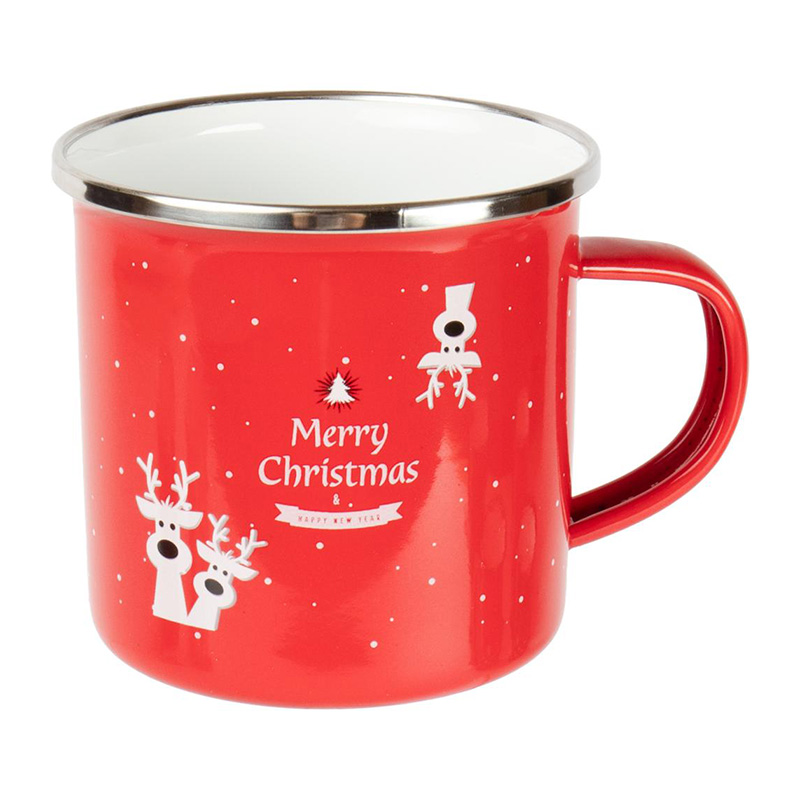 Šalica Retro Merry Christmas, emajlirana, crvena