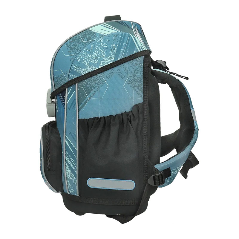 Ergonomska školska torba s oblikovanim, ojačanim naslonom i stabilnim i čvrstim dnom. Ugrađeni sustav omogućuje pravilno postavljanje torbe u skladu s položajem djeteta, a naramenice se mogu prilagoditi u više položaja, ovisno o veličini. Ugrađeni reflektirajući elementi brinu se o sigurnosti djeteta, tako da je vidljivo sa svih strana noću. Izrađena je od kvalitetnog, vrlo izdržljivog 100% poliestera bez PVC-a.