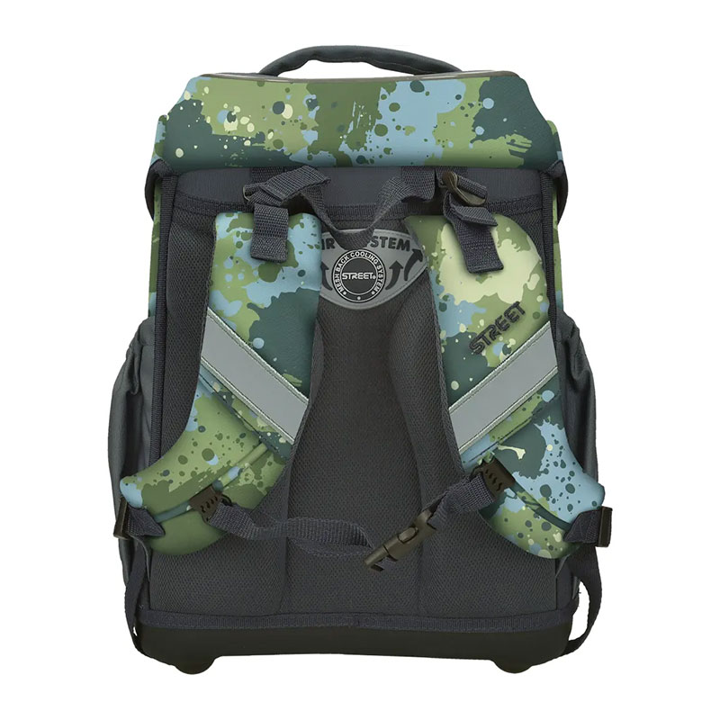 Ergonomska školska torba s oblikovanim, ojačanim naslonom i stabilnim i čvrstim dnom. Ugrađeni sustav omogućuje pravilno postavljanje torbe u skladu s položajem djeteta, a naramenice se mogu prilagoditi u više položaja, ovisno o veličini. Ugrađeni reflektirajući elementi brinu se o sigurnosti djeteta, tako da je vidljivo sa svih strana noću. Izrađena je od kvalitetnog, vrlo izdržljivog 100% poliestera bez PVC-a.