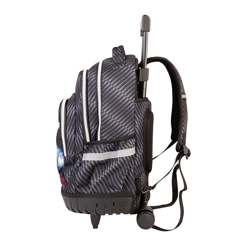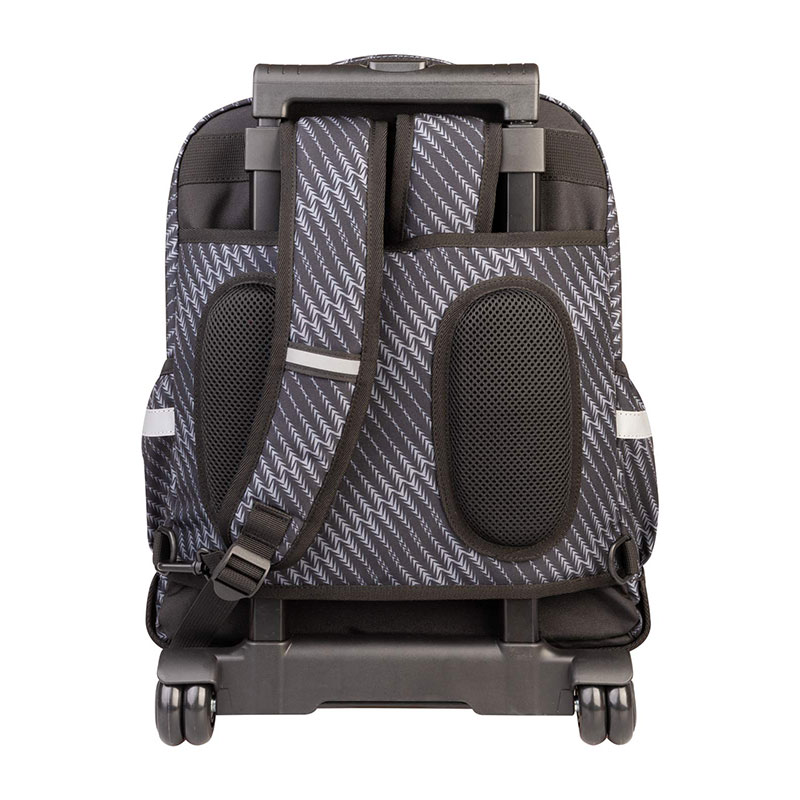 Izdržljiv, ovalni, školski ruksak na kotačiće, osigurava potpuno rasterećenje leđa. Sadrži podesive, funkcionalne i izuzetno udobne naramenice koje vam omogućuju da ga nosite cijeli dan bez nelagode ili boli. Uključuje veliku prostranu unutrašnjost koja će osigurati organizirano nošenje raznih stvari. Također ima niz pretinaca i džepova, uključujući prostrani prednji džep i bočne džepove koji su idealni za spremanje manjih predmeta kao što su ključevi, novčanik, mobilni telefon i boca za vodu . Posebnost ovog ruksaka su kotačići koji su dodani radi lakšeg rukovanja. Tako da ga možete jednostavno gurnuti ili povući kada želite olakšati pritisak na leđima. Izrađen je od izdržljivog poliestera koji je otporan na habanje, što osigurava dug radni vijek.