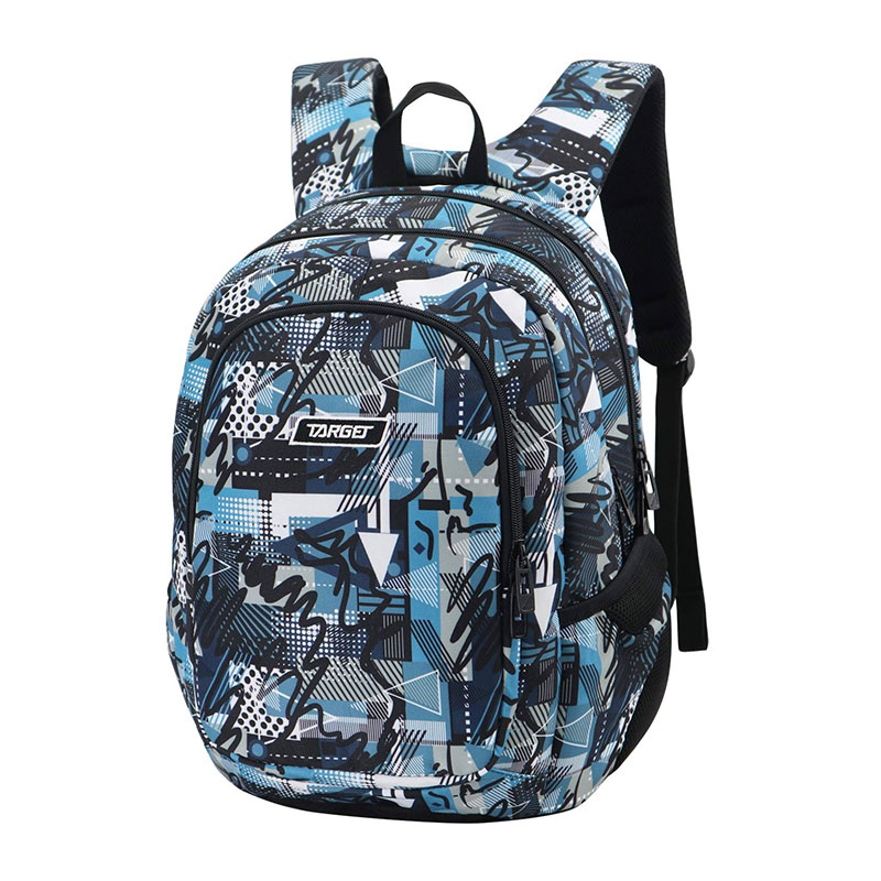 Školski ruksak Target odlikuje se ergonomski oblikovanim leđnim dijelom i čvrstim dnom. Prozračni materijal na stražnjoj strani smanjuje znojenje i time osigurava veću udobnost i zadovoljstvo tijekom nošenja. Naramenice su izdržljive i mogu se podesiti prema potrebi. Za sigurnost djeteta brinu se ugrađeni reflektirajući elementi, zahvaljujući kojima je dijete vidljivo sa svih strana i u uvjetima slabije vidljivosti. Izrađen je od kvalitetnog i vrlo izdržljivog 600D poliestera.