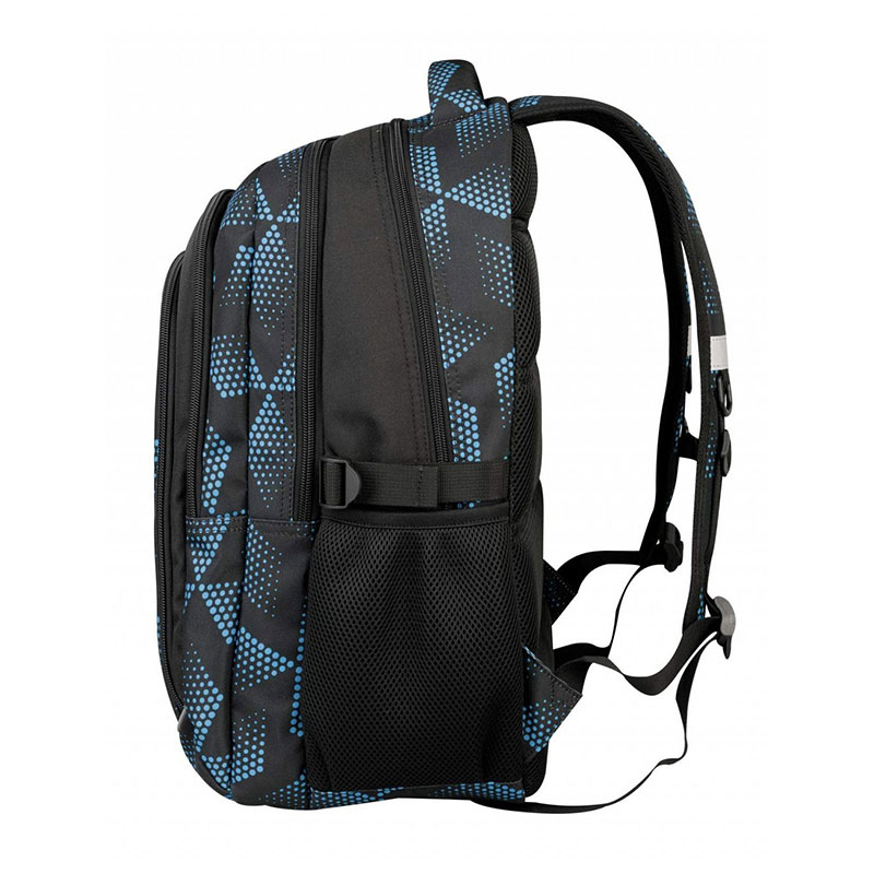 Za potpunu organizaciju brinu se četiri odvojena pretinca s patentnim zatvaračem, koji omogućuju pregledno spremanje školskih potrepština. Glavni pretinci dovoljno su prostrani za knjige, bilježnice i mape, dok unutarnji organizator omogućuje sigurno spremanje telefona, ključeva i pribora za pisanje. Dodatnu praktičnost pružaju bočni džepovi, pogodni za bocu ili kišobran. Ruksak je opremljen i reflektirajućim elementima koji povećavaju vidljivost i sigurnost u prometu.