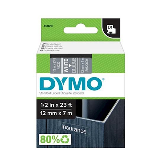 Traka Dymo D1 45020, 12 mm / 7 m (bijela/prozirna), original