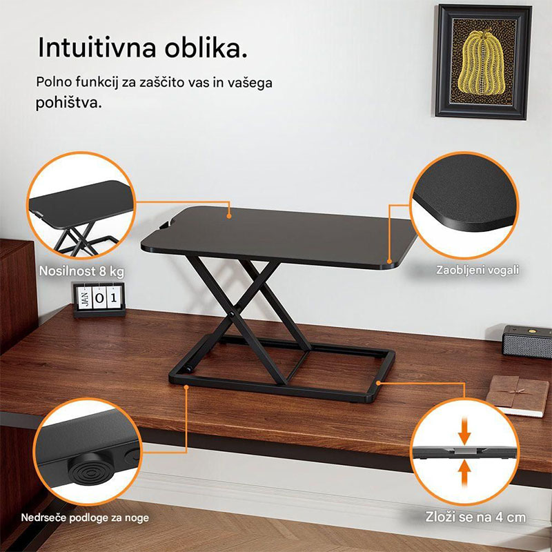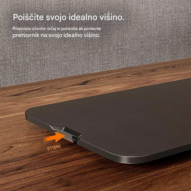 prilagođavate svojim potrebama u nekoliko sekundi. Ergonomski oblikovan, sklopiv i prenosiv stolni konverter omogućuje vam da prednosti sjedenja i stajanja iskoristite bilo gdje i bilo kada.