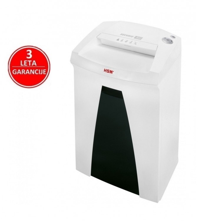 Uništavač dokumenata HSM, u novoj seriji SECURIO, omogućuje vam tih rad i uštedu energije. Kroz otvor od 240 mm možemo rezati 19 - 21 listova 80g na komade 3,9 mm. Zapremina spremnika, u kojega upadaju rezani komadi papira je 34 L i lako se prazni. Ima funkciju automatskog isključivanja-uključivanja, rezanja naprijed i nazad, u stanju mirovanja ne troši se električna energija. Posebna značajka je da noževi imaju doživotno jamstvo i 3 godine za rad.