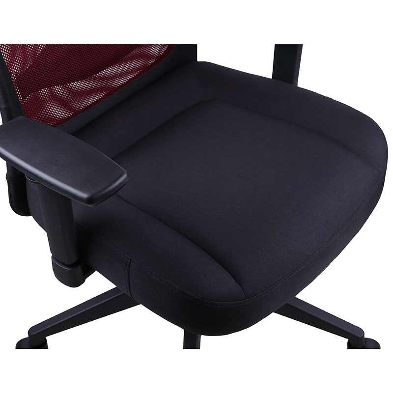 osigurava trajnu i pouzdanu potporu kralježnici bez promjene kuta nagiba. Ovakav dizajn doprinosi održavanju uspravnog držanja, a posebno će ga cijeniti oni koji preferiraju jednostavnost i stabilnost. Naslon je izrađen od izdržljive i prozračne mrežaste tkanine koja omogućuje učinkovitu cirkulaciju zraka. Materijal je elastičan i prilagođava se obliku tijela, čime povećava ergonomski komfor. Mreža je čvrsta, ali dovoljno mekana da pruži optimalnu potporu.