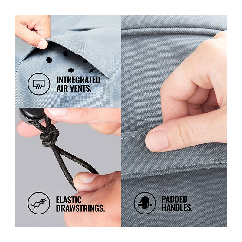 . Sadrži elastične uzice i kopče za savršeno pristajanje i sigurno prianjanje. Ventilacijski otvori omogućuju cirkulaciju zraka i time sprječavaju stvaranje plijesni.