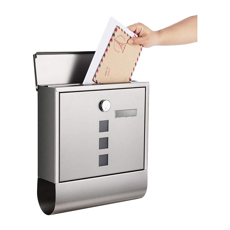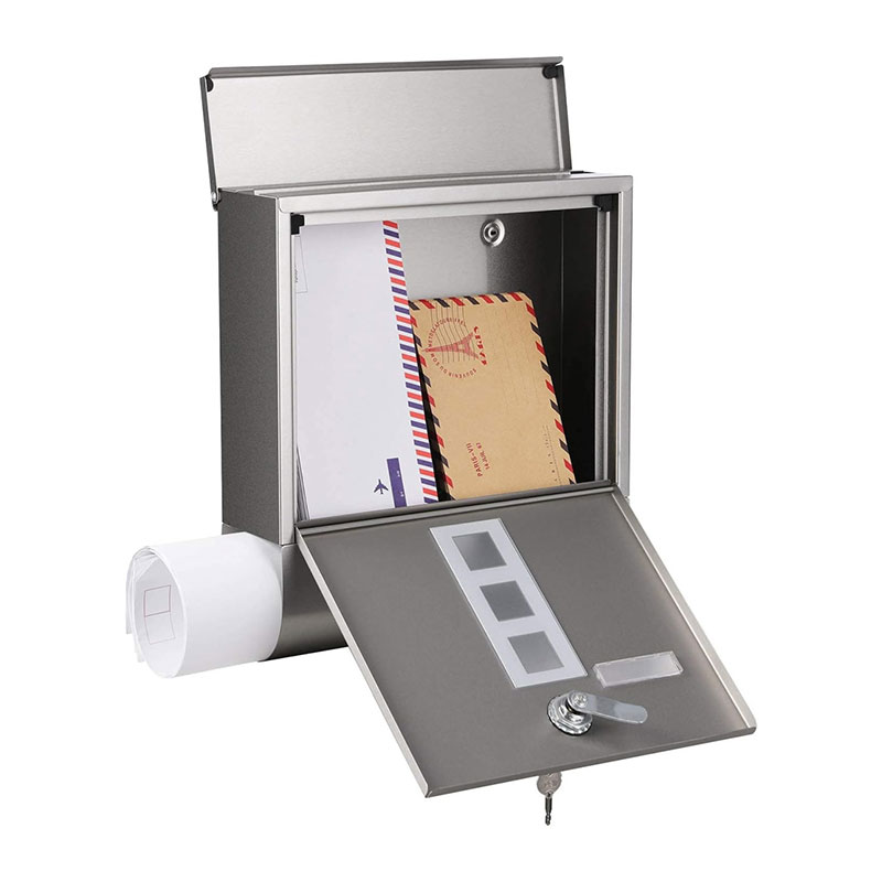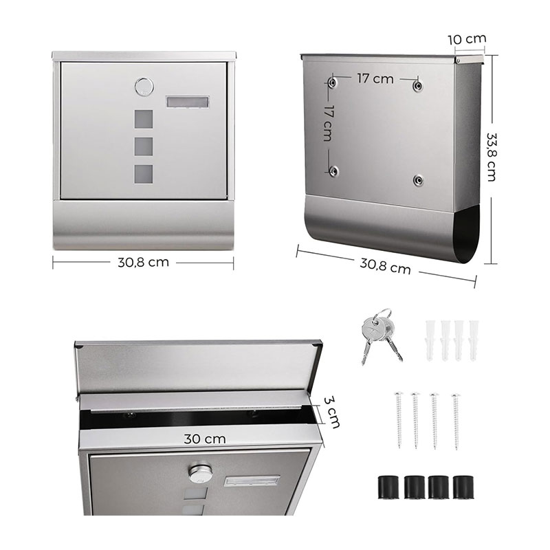 Osigurajte sigurnost i urednost vaše pošte sa zidnom poštanskom kutijom Songmics od nehrđajućeg čelika. Elegantna brušena površina u mat srebrnoj boji i kvalitetna izrada s bakrenim cilindričnim zaključavanjem pružaju pouzdanu zaštitu od vremenskih utjecaja i hrđe. Rotirajući poklopac brave dodatno štiti mehanizam od kiše. Ispod se nalazi i